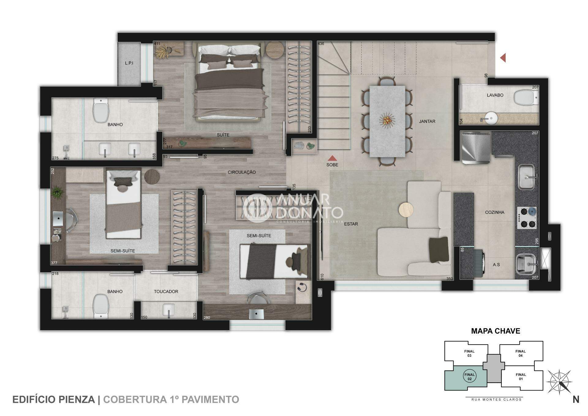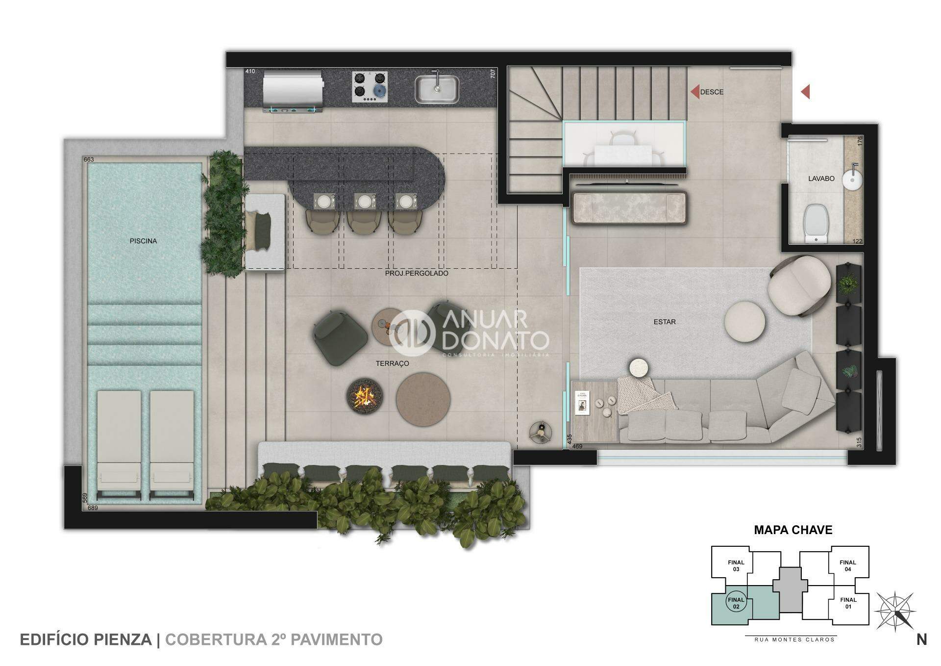O Pienza oferece um lazer exclusivo, com ambientes que convidam ao convívio e ao relaxamento. Para diferentes estilos de vida, conta com opções de apartamentos Garden e 4 coberturas duplex, com o diferencial de elevador atendendo também o segundo pavimento — um privilégio raro que eleva sua experiência de morar.
