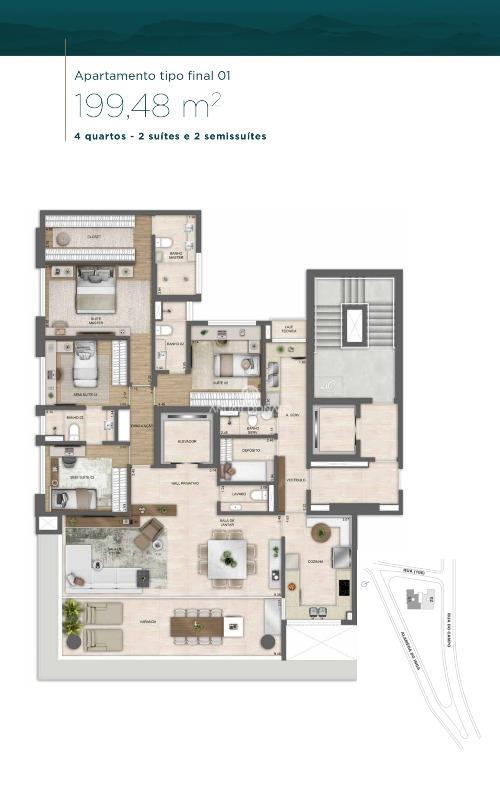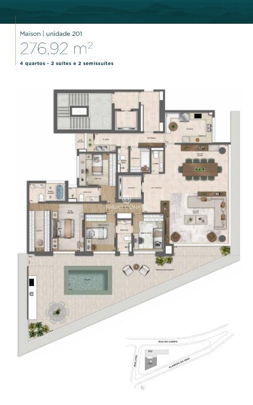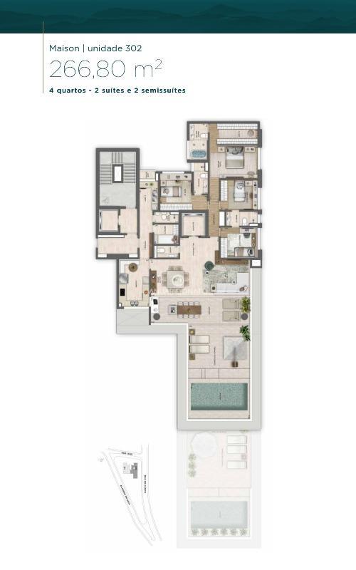 • Antecâmara social, de serviço e área para delivery independentes
