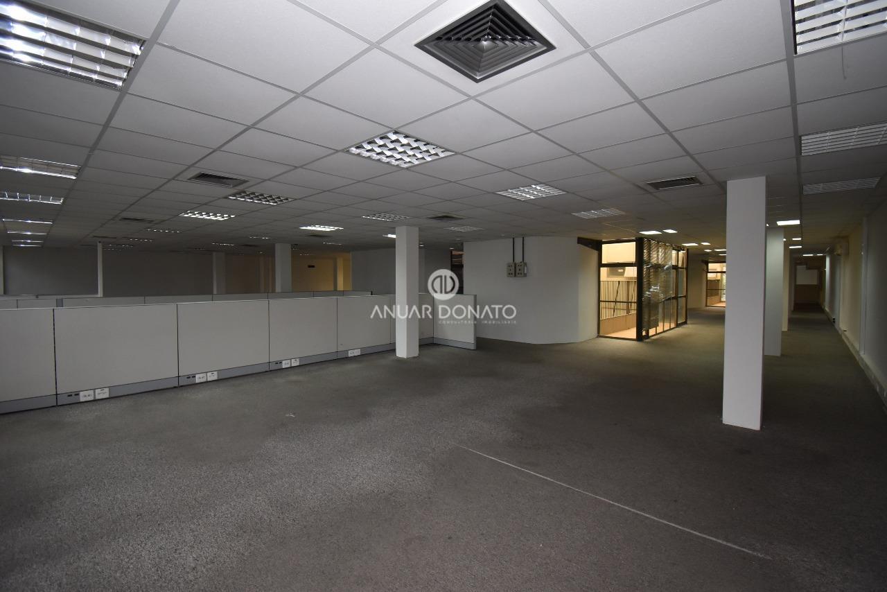 1º pavimento: piso em carpete, 12 vagas de garagem na frente, recepção, entrada separada para clientes e funcionários, espaço amplo com banheiros, sala para servidor e jardim de inverno.