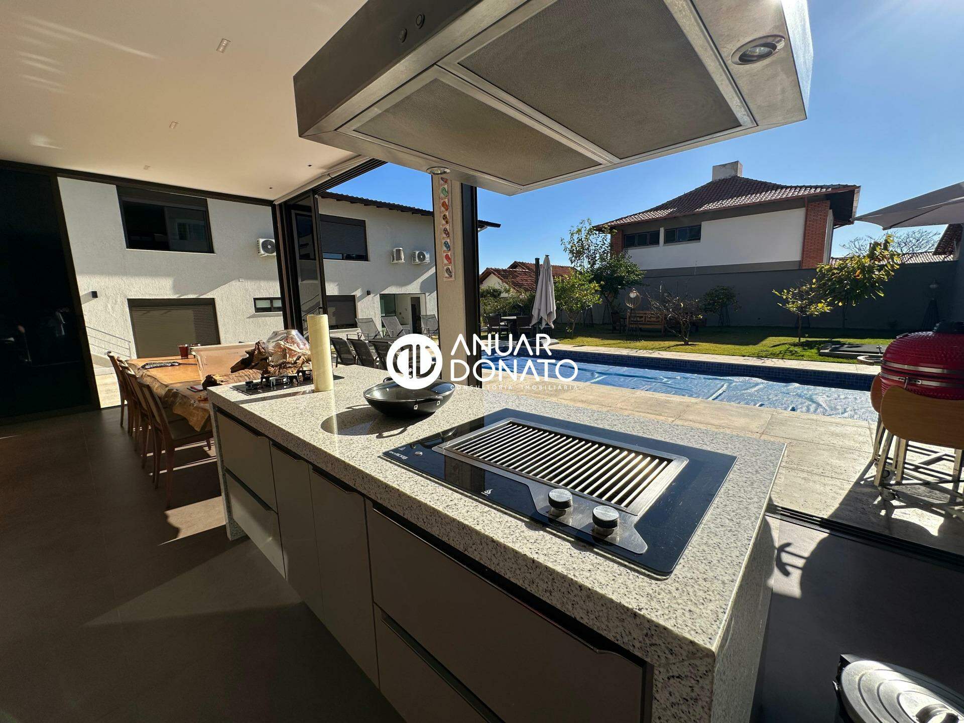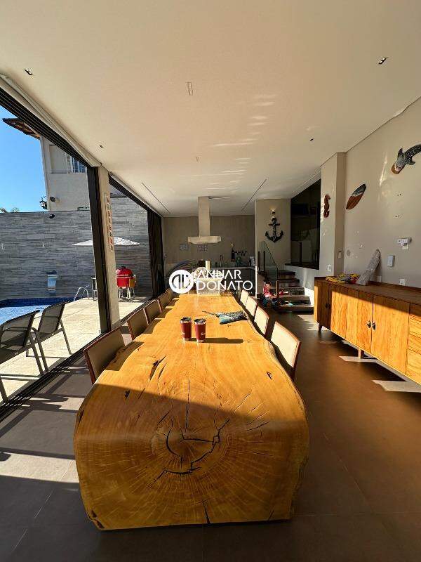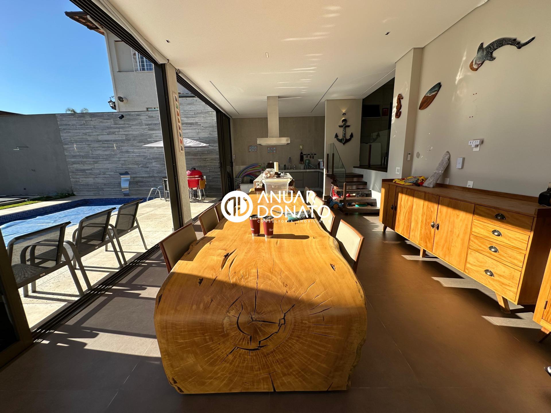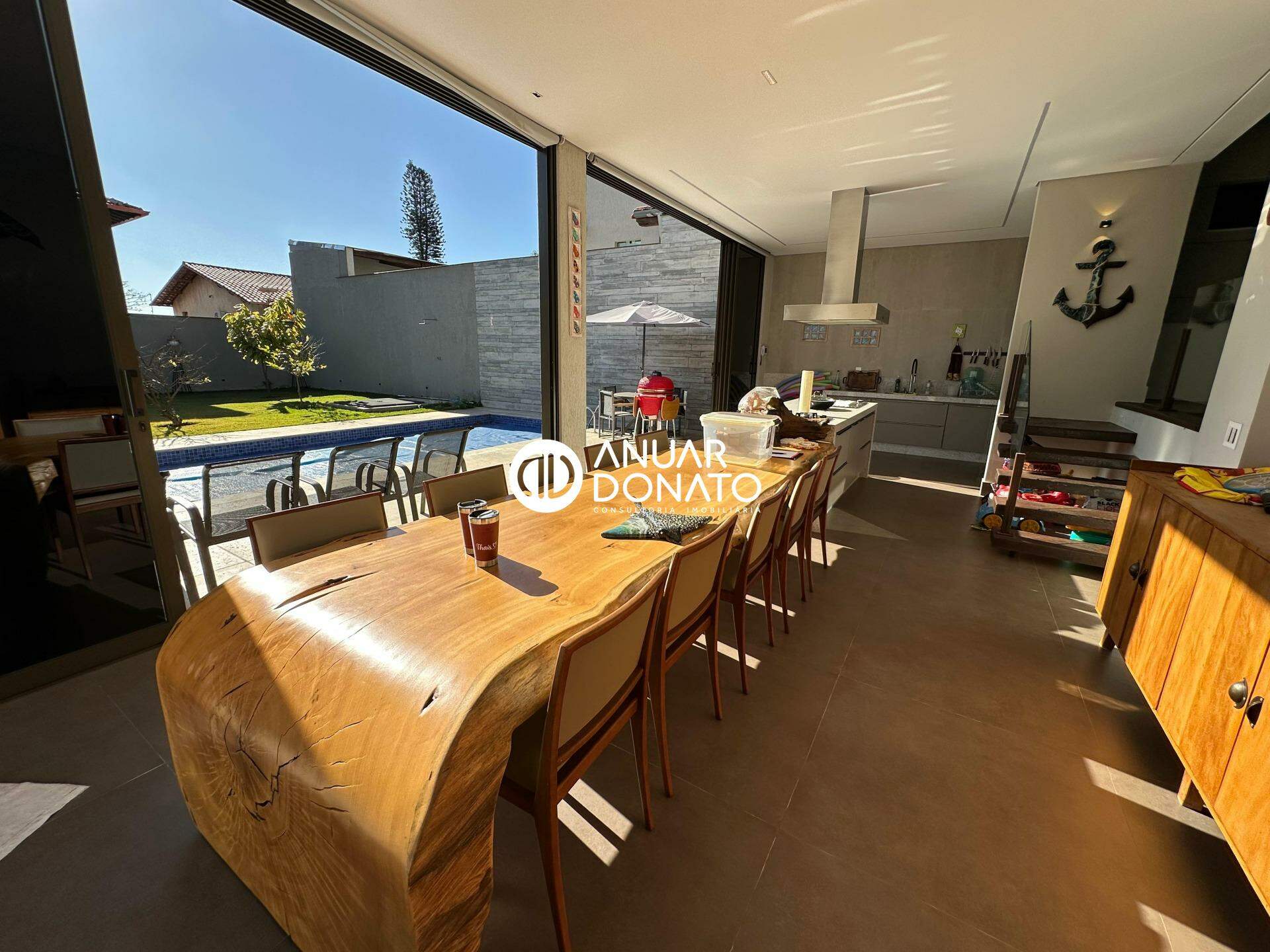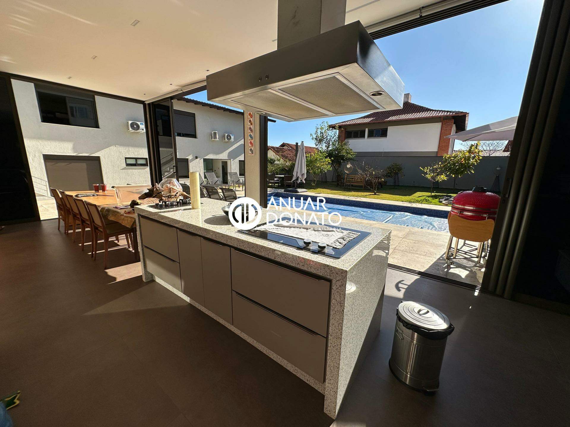 O ponto forte da casa é seu jardim, com árvores frutíferas, um lindo gramado, com luminárias espalhadas e bancos em madeira de demolição para interações sociais e momentos que se tornarão inesquecíveis. Logo a frente, uma piscina convidativa com cascata e o espaço gourmet, que se integra ao espaço, com churrasqueira, ilha com cooktop, freezer, e um mesão para momentos de confraternização. O espaço ainda conta com uma persiana automatizada em tela com proteção solar para maior comodidade.