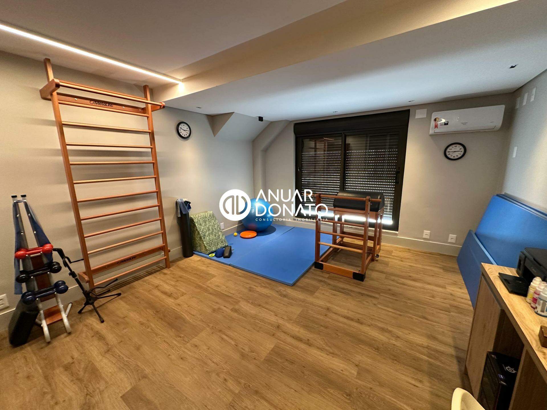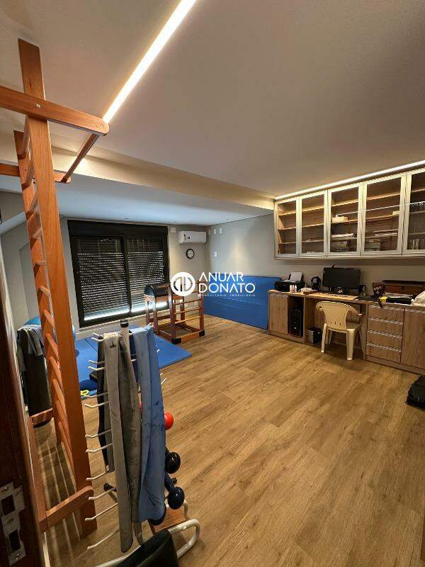 Já no piso térreo uma ampla sala com espelhos, ideal para ginástica.