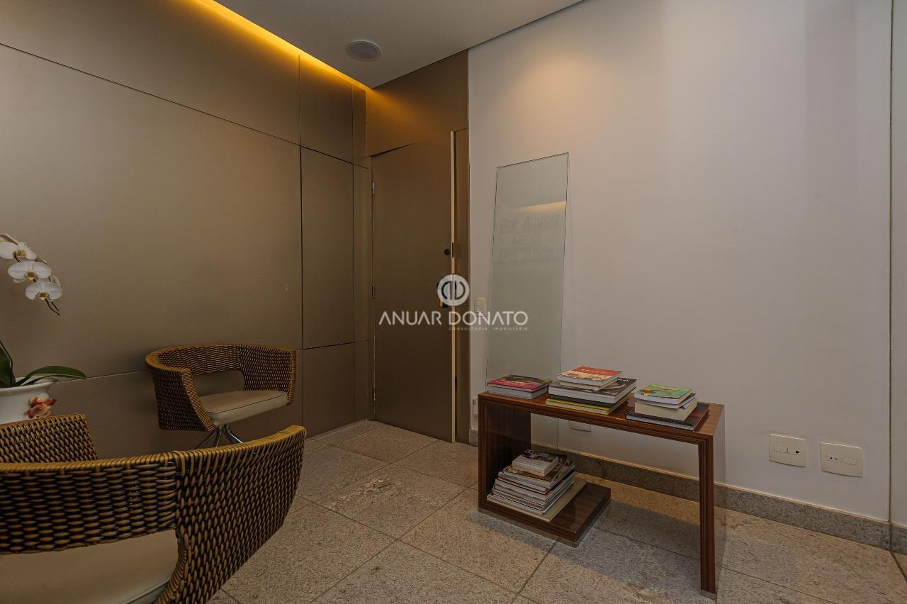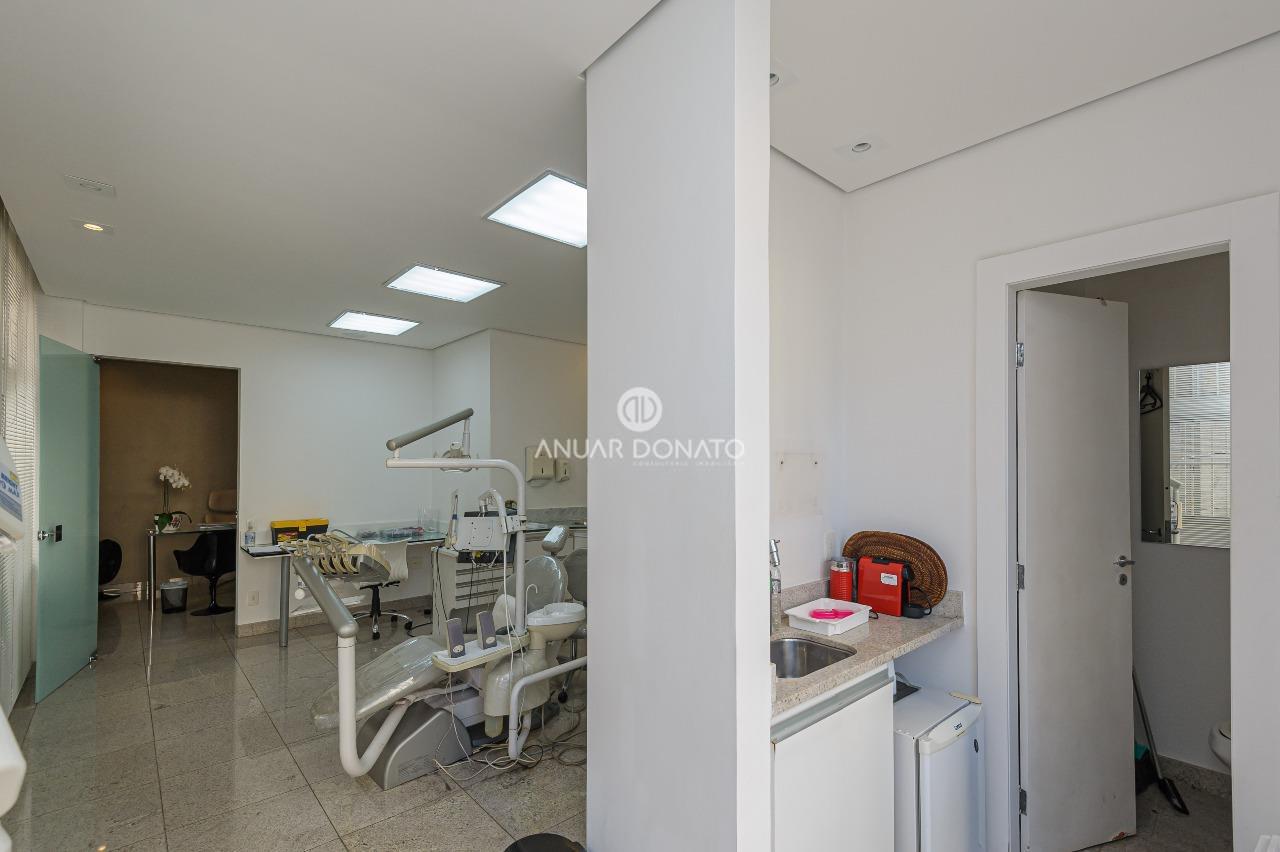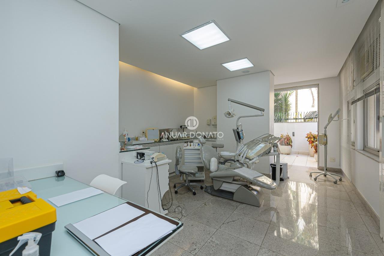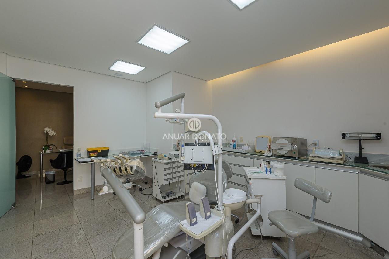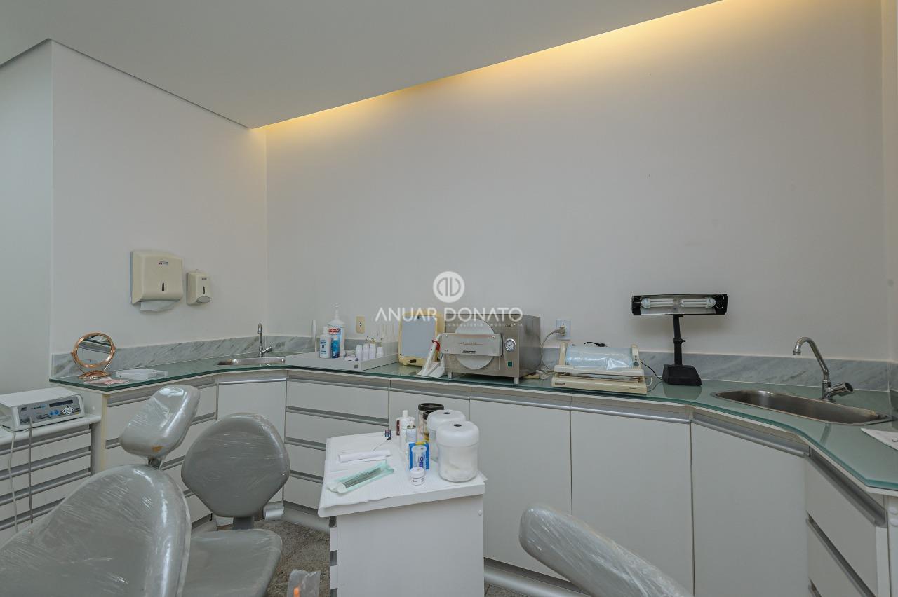Excelente conjunto de salas com acabamento de luxo, medindo 70m² dividido em 03 ambientes; recepção, escritório e consultório odontológico, todos os ambientes com piso em granito, teto rebaixado com iluminação indireta, armários planejados, ar condicionado; 2 banheiros com piso e bancada em granito; copa/cozinha de apoio e uma grande área externa com piso cerâmica.