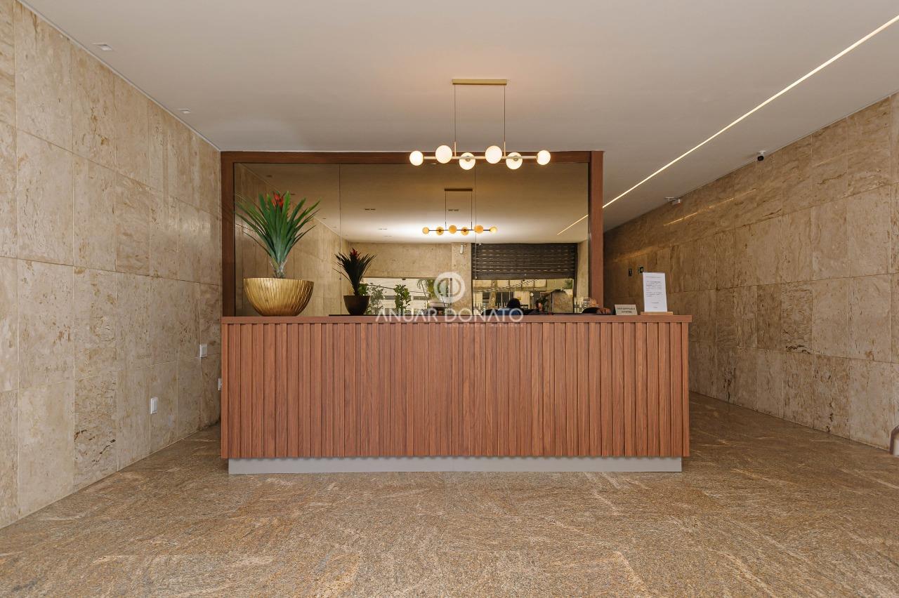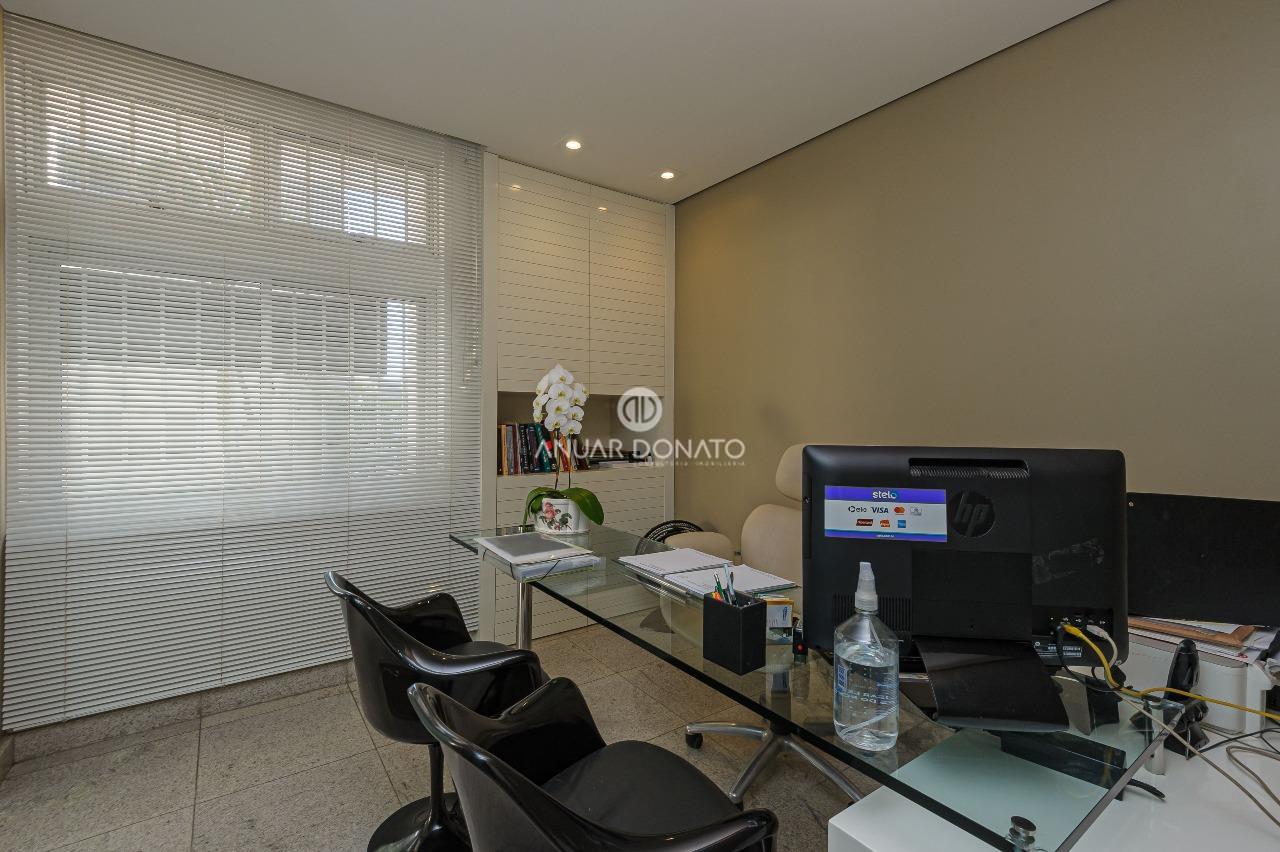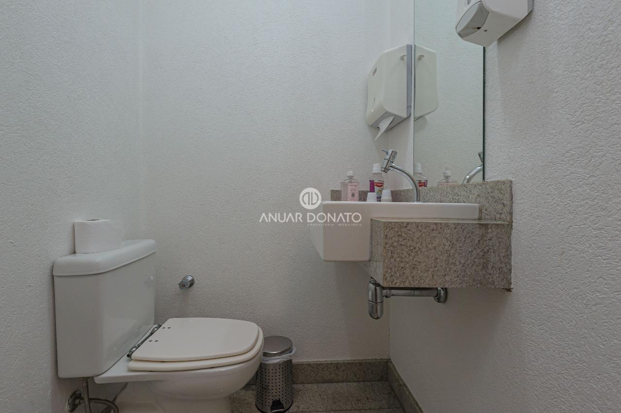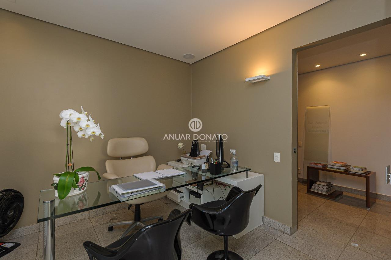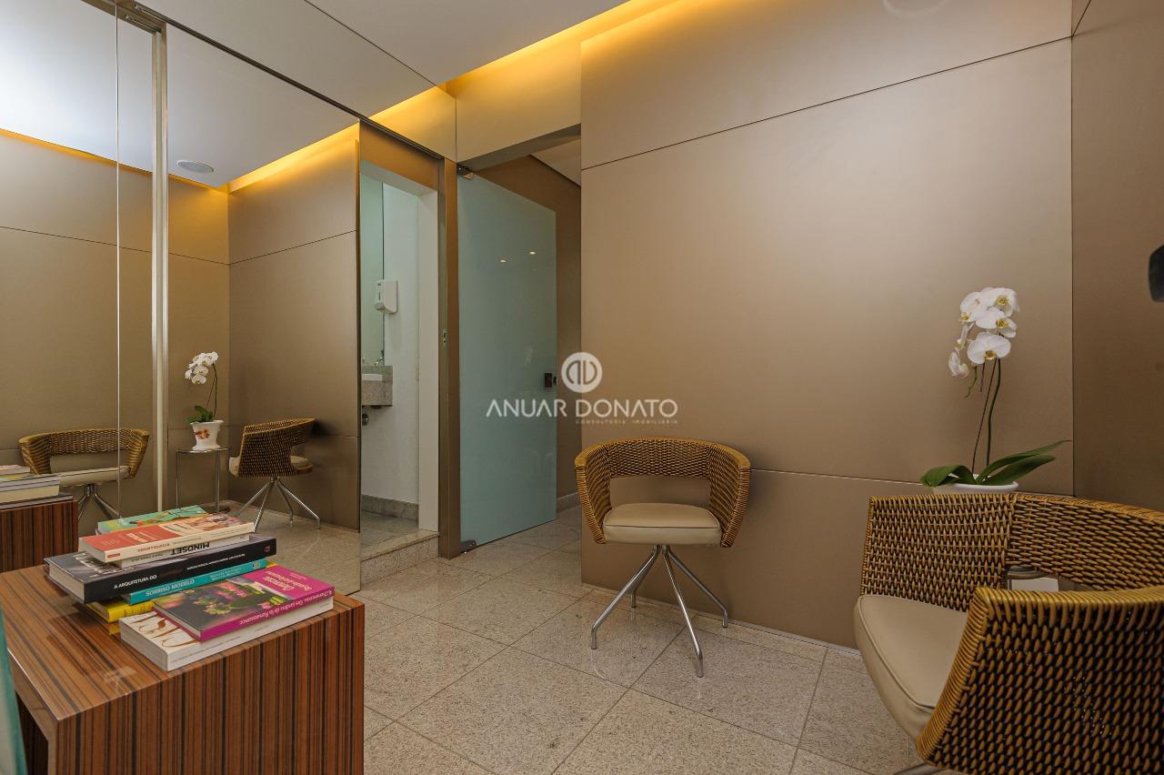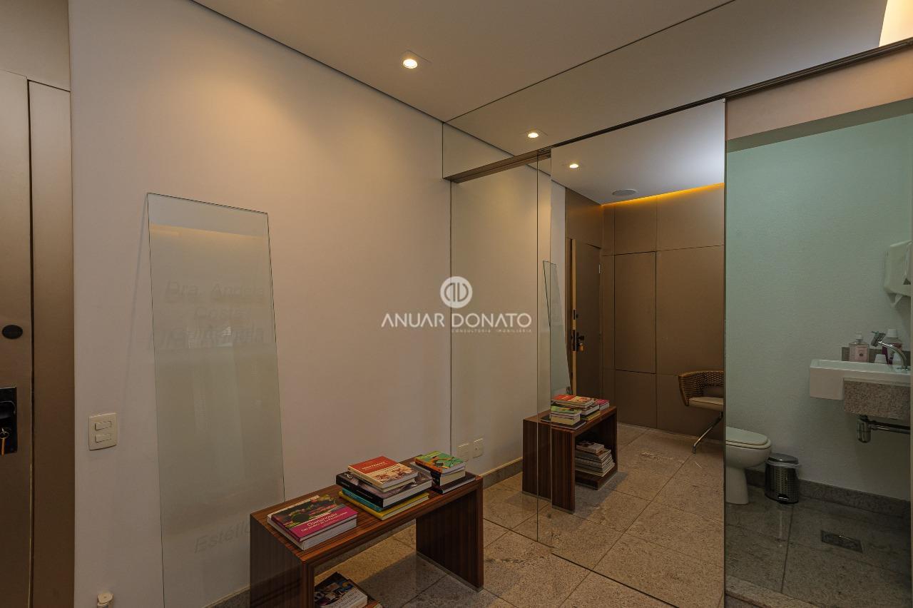 Excelente conjunto de salas com acabamento de luxo, medindo 70m² dividido em 03 ambientes; recepção, escritório e consultório odontológico, todos os ambientes com piso em granito, teto rebaixado com iluminação indireta, armários planejados, ar condicionado; 2 banheiros com piso e bancada em granito; copa/cozinha de apoio e uma grande área externa com piso cerâmica.